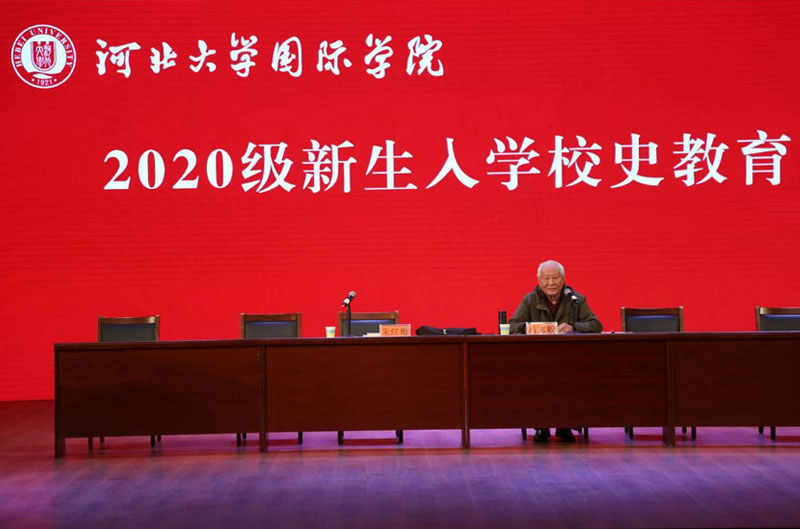 新生入学教育大会上,吕志毅教授回顾了河北大学办学99年的艰辛历程,他希望同学们全面掌握河北大学的发展历史,讲好河大美丽故事,传承好河大优秀文化,做河北大学优秀文化的继承者和传播者;学校安全工作处张博昱、周新兵通过案例进行了防骗、消防及应急教育。